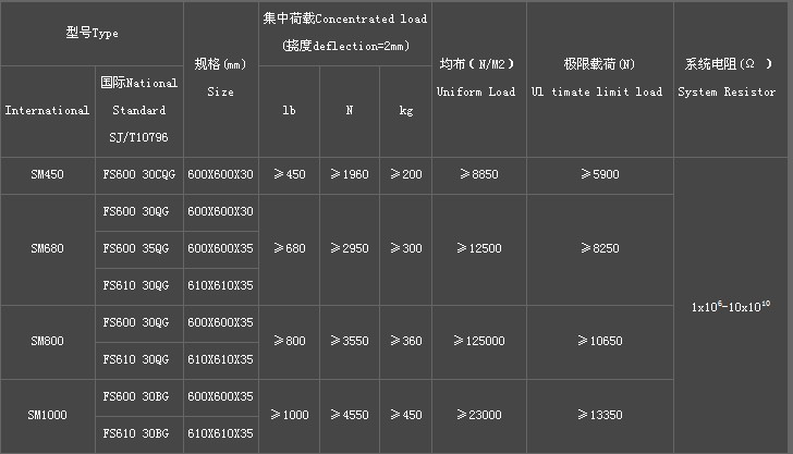 FS防靜電全鋼高架活動地板技術參數(SM600係列